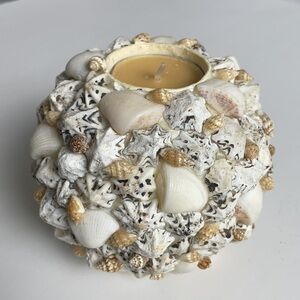 Vintage Seashell Tea Light Candle Holder Round Ball Shape Votive Boho Coastal