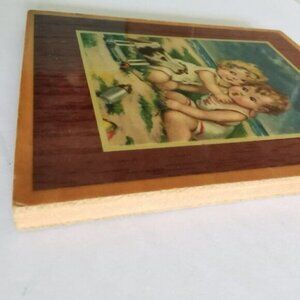 Vintage Babies at the Beach Plaque - 1930s Seaside Fun Coastal Small Children Wall Art Kewpies Vintage Antique Calendar Ephemera