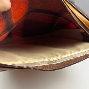 Vintage Seat cushion cover tan and plaided (laptop pouch)