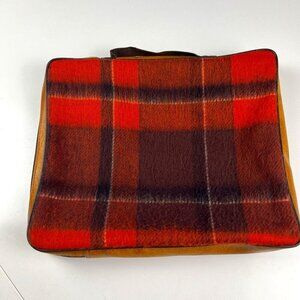 Vintage Seat cushion cover tan and plaided red (laptop pouch)