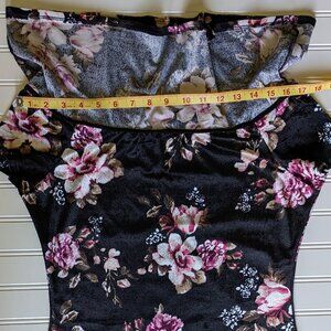 -Stunning black velvet like fabric with a gorgeous floral print