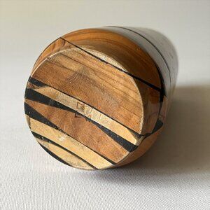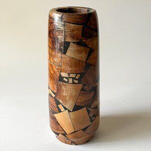 Vintage Segmented Wood Bud Vase MCM Rustic Mosaic Geometric Wood Art Boho Decor