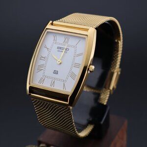 Crafted by Seiko, this slim tonneau tank watch is a unique addition to any collection. The New Mesh Band adds a touch of sophistication and elegance to the piece, while the customized design makes it truly one-of-a-kind.