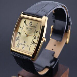 Seiko Slim Tonneau Tank Quartz Gentlemen's Wrist Watch - FREE SHIPPING