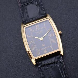 Crafted by Seiko, this slim tonneau tank watch is a unique addition to any collection. The leather band adds a touch of sophistication and elegance to the piece, while the customized design makes it truly one-of-a-kind.