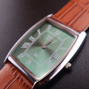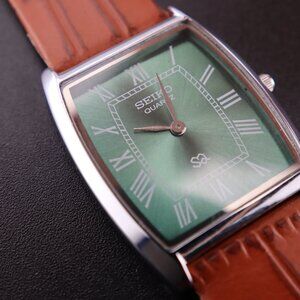 Crafted by Seiko, this slim tonneau tank watch is a unique addition to any collection. The leather band adds a touch of sophistication and elegance to the piece, while the customized design makes it truly one-of-a-kind.