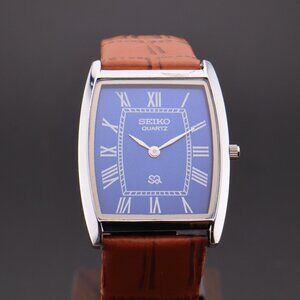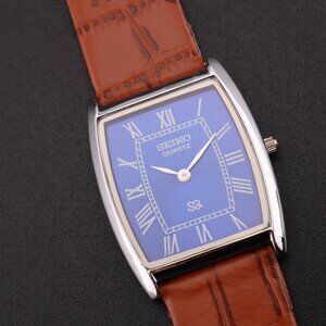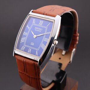 Crafted by Seiko, this slim tonneau tank watch is a unique addition to any collection. The leather band adds a touch of sophistication and elegance to the piece, while the customized design makes it truly one-of-a-kind.