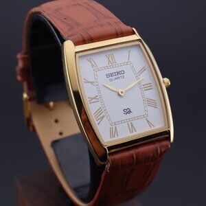 Seiko Slim Tonneau Tank Quartz Gentlemen's Wrist Watch - FREE SHIPPING