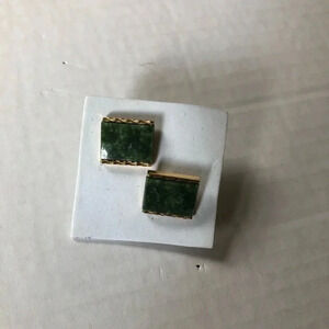 Lovely green jade stone Cufflinks with a gold tone backing. Made by Senator which I believe may be related to Sherman Jewelry.