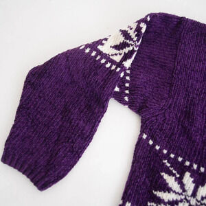 Vintage Separates Scene Purple Turtle Neck Knit Sweater w Snowflake Design L