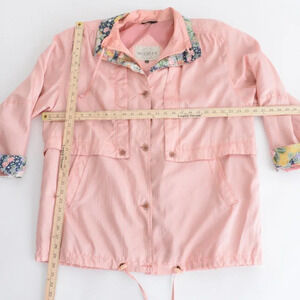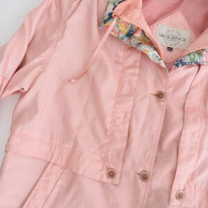 Vintage Sequence Peach Nylon w Floral Collar & Cuff Zip Up Utility Jacket 18