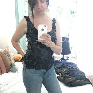 Another special find from Toronto vintage queen / shop -- Vintage 69. Perfect condition. Scalloped bottom that's very unique. Slinky and fun! As always, dress up or down.