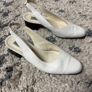 Vintage Sergio Casciani White Leather Slingback Block Pumps Women’s Size 7 1/2