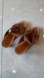 Sergio Rossi brown leather mules with open-toe and wooden block heel. Condition as shown.