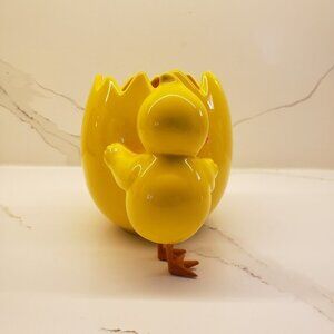 #23 Set of 2 Vintage Yellow Chick Hugging Egg Planter Tall Strawberries Dots Mug EASTER