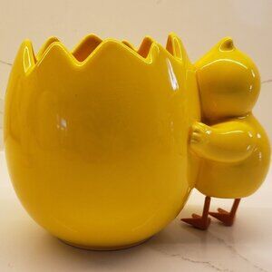 Vintage Set of 2 Vintage Yellow Chick Hugging Egg Planter Tall Strawberr…
