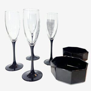Vintage Set of 4 gorgeous LUMINARC Tall Black Stem Champagne Flutes...