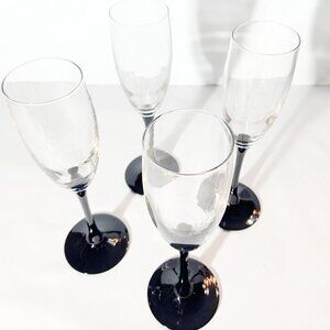 *set of 4 delicate, black stem champagne flutes by LUMINARC.