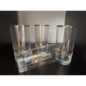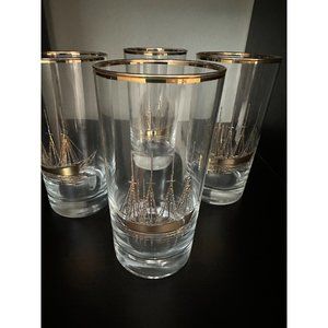 Vintage Set of 4 Midcentury 22K Gold Embossed Clipper Ship Glasses