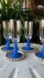This lovely vintage set of four hand blown champagne flutes feature a blue marbled base and clear glass; this discontinued design was manufactured between 1999-2003 by Villeroy and Boch. Each glass is slightly unique as they are handcrafted. Such a wonderful set to host and enjoy your beverage of choice! *Each glass is photographed individually in pairs*