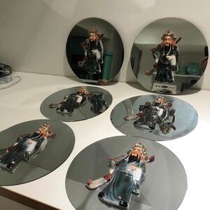 Vintage Set of 6 Asian Fighter Mirror Wall Plates