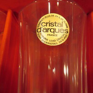 Each glass is genuine blown lead crystal, made in France, and measures approx. 8.5 inches tall, with a 2.25 inch diameter at the rim. The crystal is thick and quite heavy.