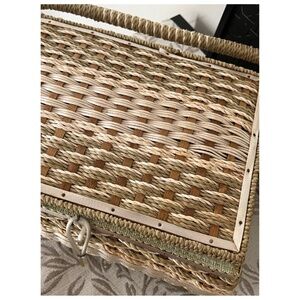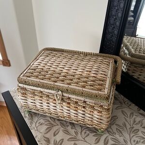 Vintage Sewing Basket - Woven with Satin Lining and Mint Green Details