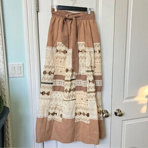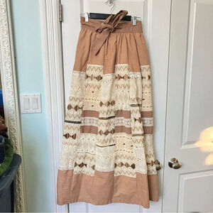 Vintage Shamash & Yofi Creations Tan Cotton Cream Neutral Patchwork Maxi Skirt