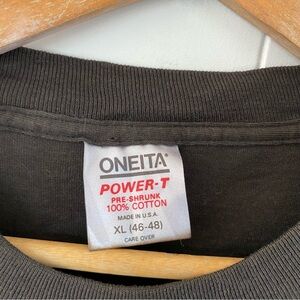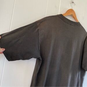 Cat lover and vintage tee enthusiast? Perfect! This shirt features a big, metallic gold Sheba cat logo on the front. Single stitch. Made in USA by Oneita. Has fading throughout, and wear on the logo… but in great vintage condition with lots of wear left in it. A rare find. Size XL. Kind of a faded black/gray.