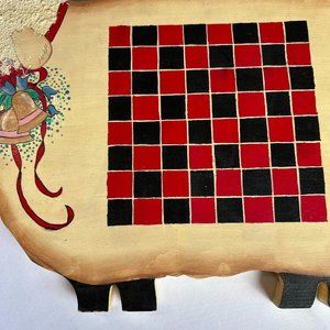 Vintage Sheep Shape Wood Checkerboard Folk Art Game Set 16" x 11"