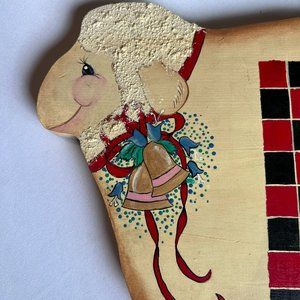 Vintage Sheep Shape Wood Checkerboard Folk Art Game Set 16" x 11" 1993