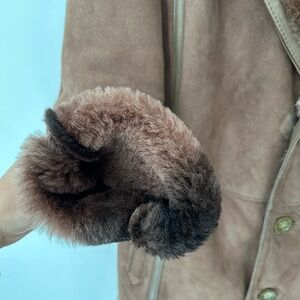 This coat is too small for the person I was buying it for. The coat is in perfect condition. I could not find a flaw anywhere--in fact it looks like it has never been worn. Lovely beige color and the entire inside of the sleeves are covered in sheepskin as well. Send me an offer.