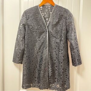 Vintage Sheer Lace Button Up Mid-Length Jacket Black