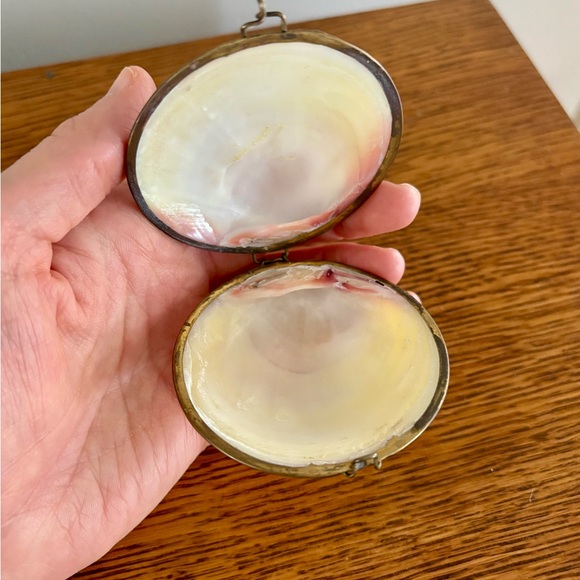 Unique vintage shell compact with a natural cream interior. Perfect for collectors.