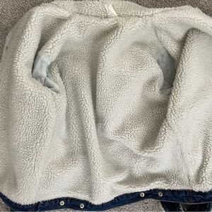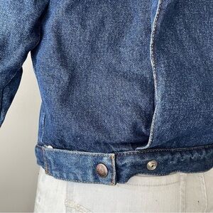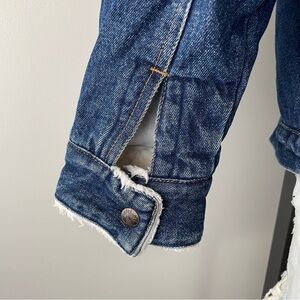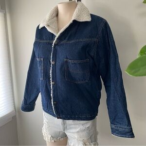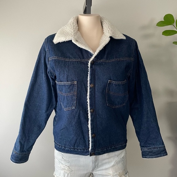 Vintage Sherpa Fleece Lined Denim Jacket Button Down Dark Medium Wash Size Small