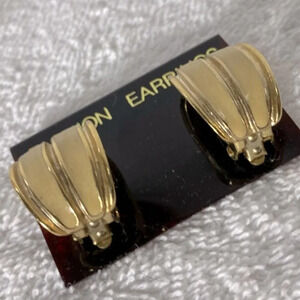 Vintage Shiny & Frosted Gold Tone Half Hoop Clip On Earrings