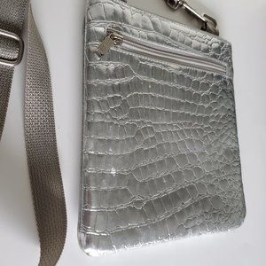 Vintage Shiny Silver Embossed Croc Crossbody Bag Adjustable Band Strap Quality