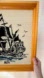 Beautiful vintage ship embroidery art. Features a detailed ship design in black thread. Set in a classic wooden frame.