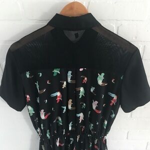 Vintage Shirt dress Barilà Tropical Tuccan Bird Print Black S