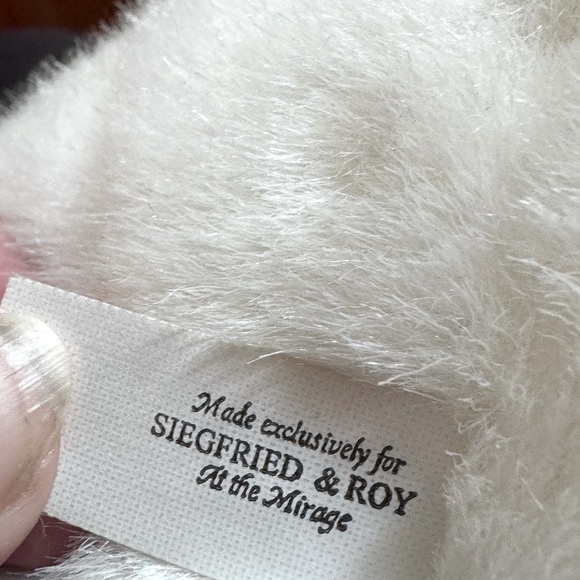 Vintage collectible plush tiger made exclusively for Siegfried & Roy at The Mirage in Las Vegas. This adorable white tiger features embroidered facial stripes, soft faux fur, and a red heart patch on its paw and when it is squeezed, a soft roar is heard. A perfect keepsake for fans of the legendary magic duo or collectors of vintage Vegas memorabilia.