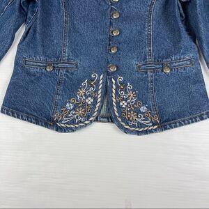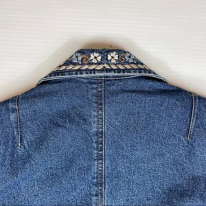 Vintage Signature Gordon & James Blue Denim Blazer Embroidered Lapels Women's M