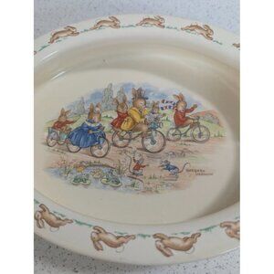 Vintage Signed Barbara Vernon Royal Doulton Bunnykins Oval Dish Riding Bikes