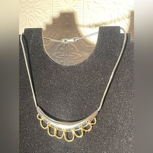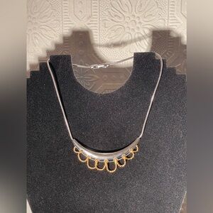 Vintage Signed F.O. Jewelry Gold and Silver Tone Choker Dog Collar Necklace Rare to Find.