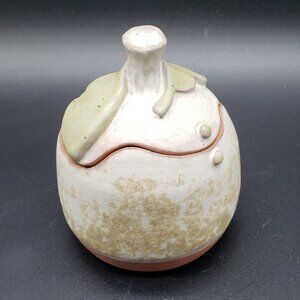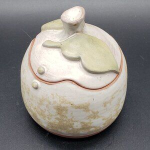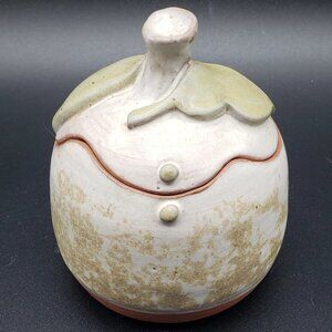 Vintage Signed Hobbiest Cream Green Leaf Turned Art Pottery Ginger Jar with Lid