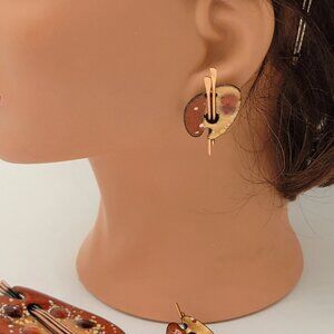 Vintage Signed Matisse Artist Palette Brooch and Clip-on Earring Set