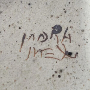 Vintage Signed Mexican Tonala Art Pottary Handpainted Blue/Green/White Foliage