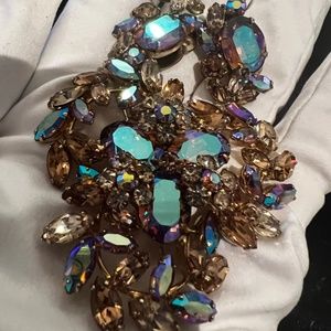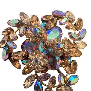 Signed Sherman Vintage 50's ultra high quality AB Swarovski rhinestones that capture the light and turn it into sparkling colors multilevel Brooch and matching clip on Earrings.