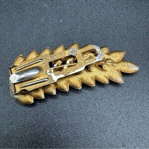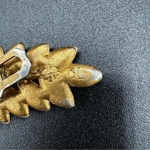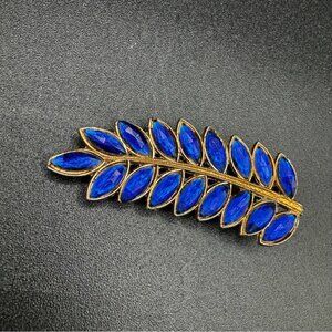 Sapphire jewel colored rhinestones in a leaf shape with gold tone painted fur clip or scarf clip or dress clip - could use it as a brooch or other accessory, it's very pretty