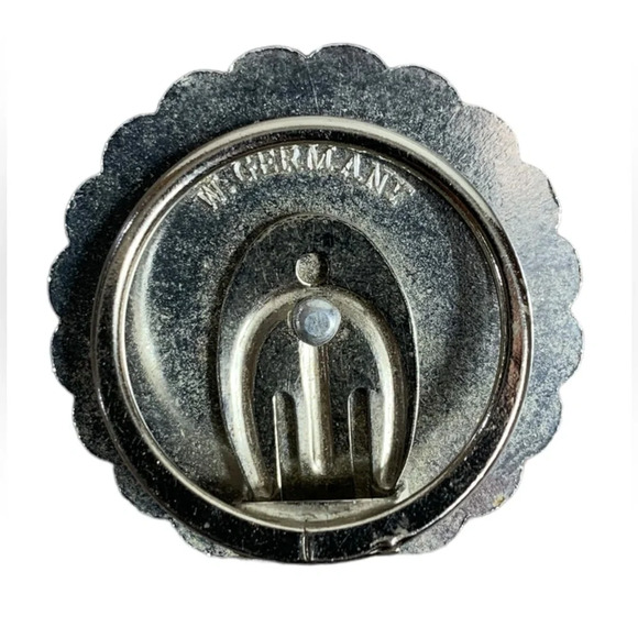 Vintage Signed W. Germany Silver Tone Intricate Round Dome Scarf Clip