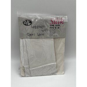 Vintage Silik Footless Tights With Elastic Lace WHITE One Size Nylon NOS Unused